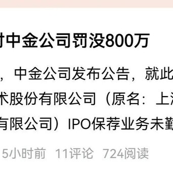 【中金性质那么恶劣,应该加重处罚】证监会拟对中金公司罚没800万元,虽然监管按照行政处罚,已经是顶额处罚了。但是对于广大股民投资者来说,这个处罚好像仍然是隔靴搔痒,性质那么恶劣,其实应该是要加重处罚。